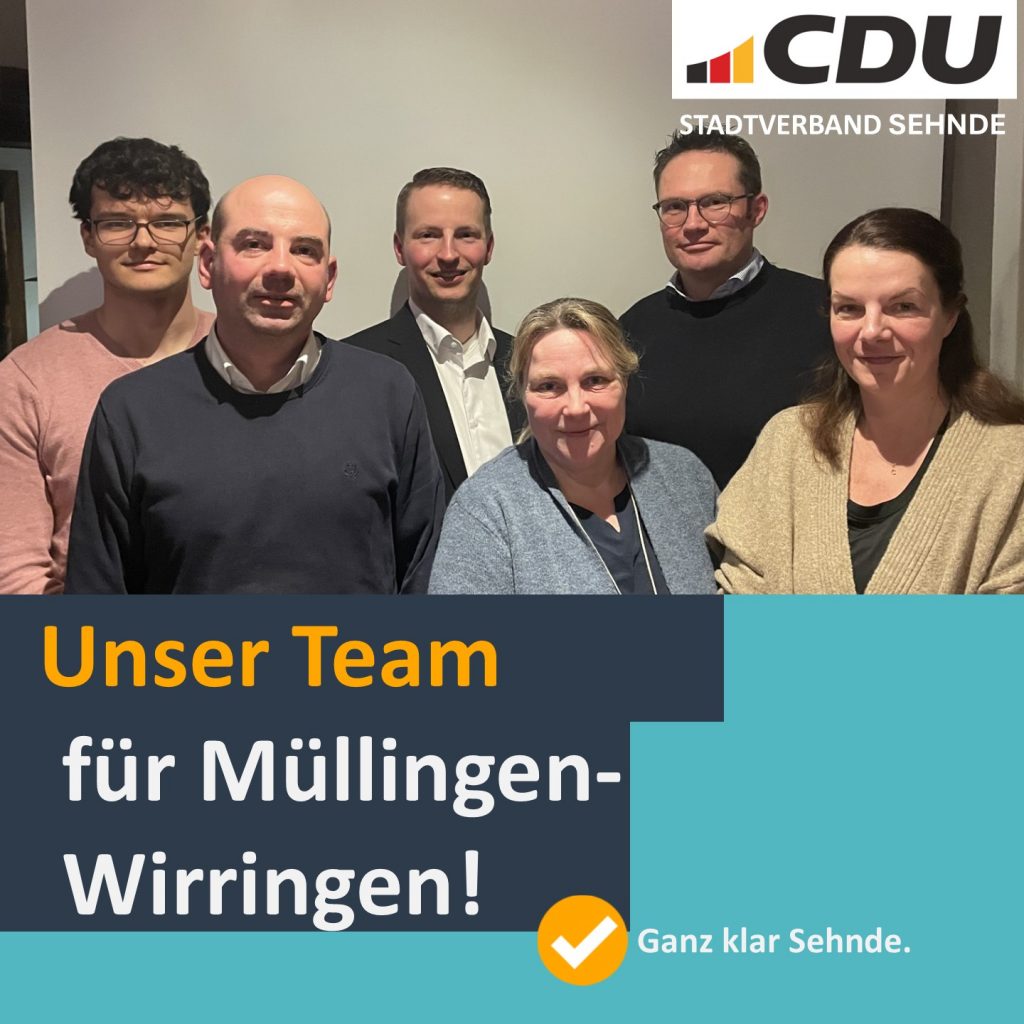 Die CDU Müllingen-Wirringen hat ihr Kandidatenteam für die Kommunalwahl im September dieses Jahres gewählt. Mit einer ausgewogenen Mischung aus Erfahrung, neuen Ideen und starker lokaler Verbundenheit sieht sich der Ortsverband gut aufgestellt, die Zukunft der Ortschaften aktiv mitzugestalten. Als Kandidatin für das Amt der Ortsbürgermeisterin tritt Anja Brinkmann an. Für den Ortsrat kandidieren Daniel Spörr, Tanja Koritki, Jan Christoph Liehe, Oke Fedders und Valentin Schmidt.